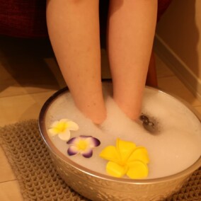 フットバスでは、ミネラル・ビタミンなどが配合した天然由来の成分の入浴剤を使用します。フットバスは血行がよくなり、気になる足のにおいも洗い流すことができます。